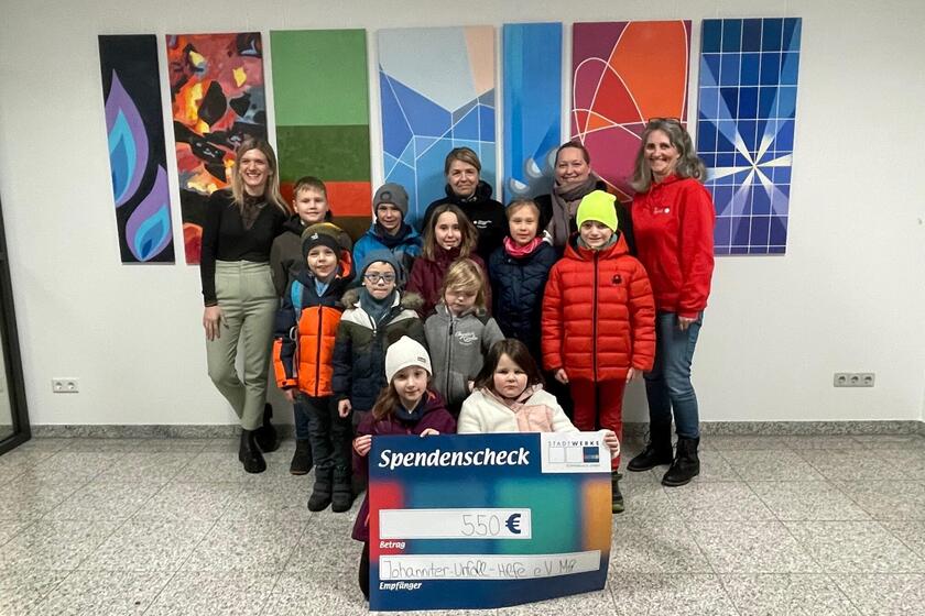 Dieses besondere Engagement unterstützen die Stadtwerke Schwabach mit dem Erlös aus ihrem Adventskalender. Am Mittwoch, den 10.01.2024 besuchte die Kindergruppe der Johanniter-Jugend die Stadtwerke und bekam einen großen Spendenscheck in Höhe von 550 € überreicht.