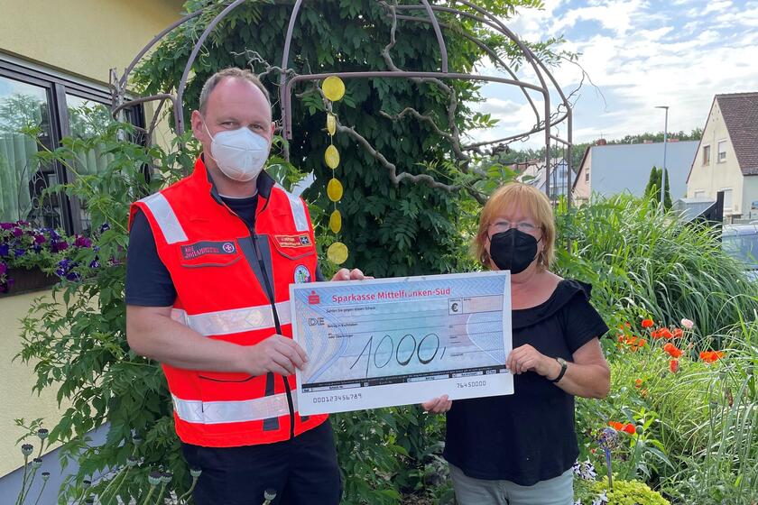 Nicht ohne Grund besuchte Jörg Deffner, Ortsbeauftragter der Johanniter in Schwabach am Montag, den 21.06.2021 Marianne Lachmann. Sie hatte sich bei den Johannitern gemeldet um 1.000 € für die ehrenamtliche Arbeit zu spenden. „Das Geld kommt genau zur richtigen Zeit. Wir möchten uns zwei neue E-Bikes für die Fahrradstaffel anschaffen“, bedankt sich Jörg Deffner bei der Spenderin. Das Geld stammt aus dem Handel mit Trödel, dem Marianne Lachmann mit viel Leidenschaft nachgeht.