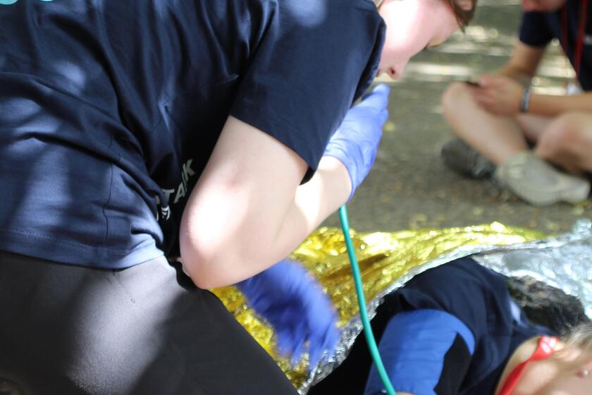 Gemeinsam lösten alle die Situation gut und wurden anschließend von Rettungsdienst und Bevölkerungsschutz abgelöst. Hier hatten die Teilnehmenden die Möglichkeit, den professionellen Rettern und Retterinnen bei der Patientenversorgung über die Schultern zu schauen.