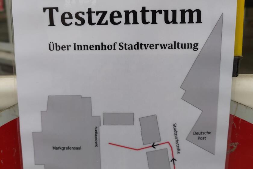 Johanniter-Testzentrum im Markgrafensaal über anderem Eingang erreichbar