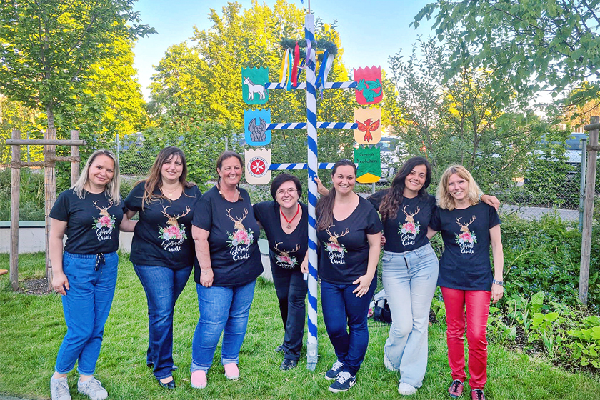 Der weiß-blaue Maibaum wird die Kinder beim täglichen Spielen im Garten immer an dieses wunderschöne erste Kindergartenfest erinnern.