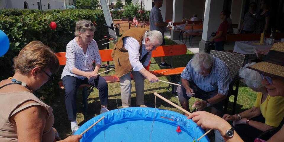 Am Nachmittag konnten die Gäste an einer kreativen Stunde teilnehmen und verschiedene Spiele im Wettkampfmodus auf der Terrasse der Einrichtung mitspielen. Entenfischen, Becherschießen mit Wasserpistolen und das Treffen von Wasserballons mit Darts sorgten für jede Menge Spaß und Unterhaltung. Die Gewinner der Spiele erhielten kleine Aufmerksamkeiten als Anerkennung.