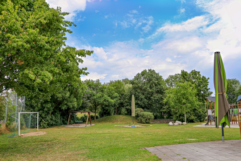 Der großzügig angelegte Garten bietet den Kindern viel Raum zum Spielen