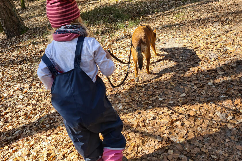 Immer neugierig bleiben: Mit dem Kindergartenhund Ruby machen die Kinder im Waldkindergarten Schlüsselau ganz neue Erfahrungen.