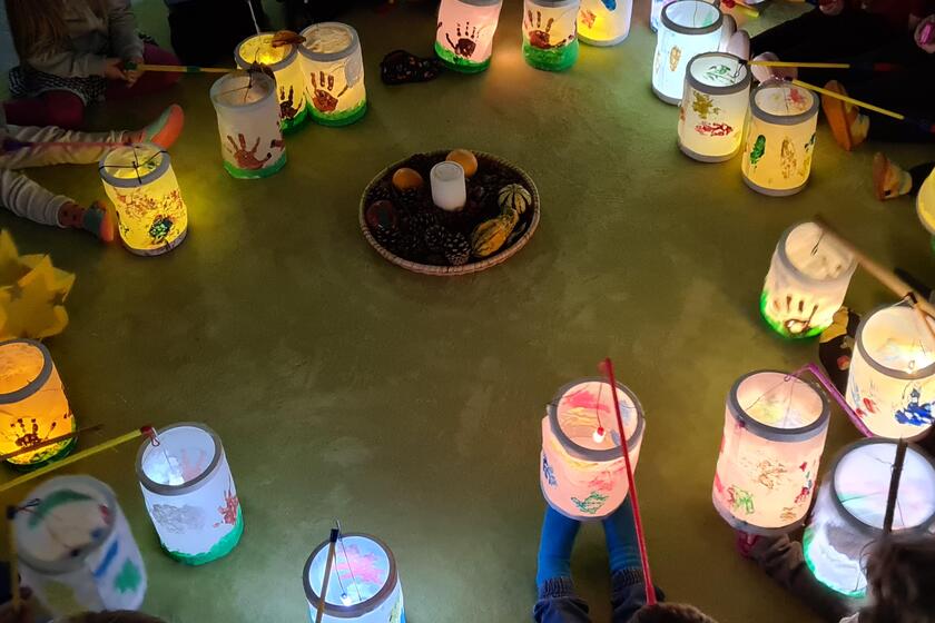 Ein großes Fest mit Eltern und einem gemeinsamen Martinsumzug ist es dann auch dieses Jahr nicht geworden: Wieder machte dem Team der Naturkita an der Reichen Ebrach die Pandemie einen Strich durch die Rechnung. „Wir hatten bereits alles geplant, aber in der aktuellen Situation ist es einfach nicht möglich eine größere Veranstaltung durchzuführen“, so Sabine Leichsenring-Knoblach, Leiterin der Naturkita. In schöner Erinnerung werden die Kinder das Martinsfest 2021 aber sicher dennoch behalten: Gefeiert wurde nämlich trotzdem. Damit die tollen selbst gebastelten Laternen bei einem Mini-Laternenumzug durch die Räume der Kita auch richtig zur Geltung kamen, wurden einfach die Rollos heruntergelassen. Auch die Martinsgeschichte wurde erzählt und von den Kindern nachgespielt. Zum Abschluss gab es im Garten von den Eltern gebackenen Kuchen und Kinderpunsch, den die Familie Eideloth spendiert hatte.