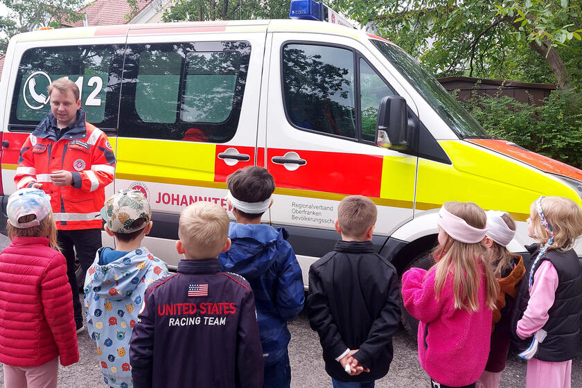 Einen aufregenden Tag erlebten die Vorschulkinder in der Johanniter-Kindertagesstätte Biberbande: Erste Hilfe-Ausbilder Chris Stöcklein war mit einem Krankentransportwagen, kurz KTW, zu Besuch, um die Jungs und Mädchen zu Ersthelfern von morgen auszubilden! Wie setzt man einen Notfall ab? Wie legt man einen Verband an? Und wieso ist es so wichtig, jemanden zu trösten, dem es nicht gut geht? All das stand auf dem Programm: So lernen bereits die Jüngsten bei den Johannitern wie man Erste Hilfe leistet.