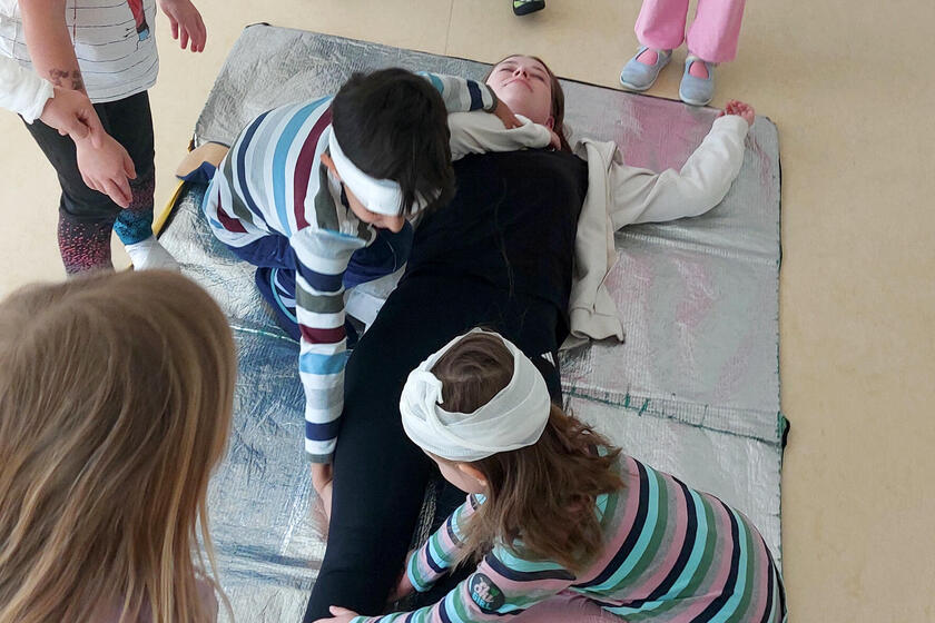 Vorschulkinder der Biberbande lernen, wie Erste Hilfe geht
