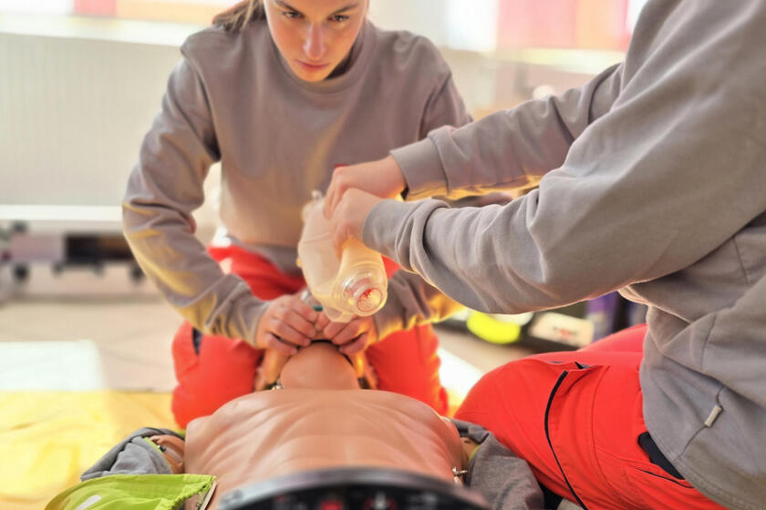 Spaß haben auch Emma und Eva, vor allem dann als sie endlich selbst Hand anlegen können. An einer Puppe üben sie einen Menschen zu reanimieren und zu beatmen. Schnell wird klar: Das ist keine leichte Aufgabe. Aber im Team klappt es bei den beiden ziemlich schnell ziemlich gut. „Das ist auch bei uns im Einsatzfall nicht anders. Wir müssen Hand in Hand arbeiten, viel miteinander reden und uns aufeinander verlassen können“, erklärt Franziska Gumbmann. Interesse und Engagement für den Job bringen Eva und Emma auf jeden Fall mit, das hat der Girls’Day gezeigt. Beide gehen aktuell in die 8. Klasse und haben damit noch ein bisschen Zeit, bis sie eine Entscheidung für ihre berufliche Zukunft treffen müssen. Eine Karriere im Rettungsdienst ist nach diesem Tag aber vielleicht ein bisschen näher gerückt.
