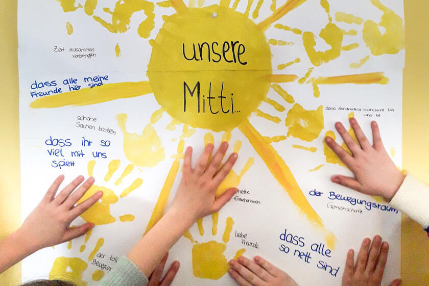 Ein zweites Gemeinschaftsprojekt war in den vergangenen Wochen ein selbstgestaltetes Plakat, das nun in der Schulaula für gute Laune sorgt. Denn zum einen strahlt eine fröhliche Sonne vom Plakat, zum anderen finden sich dort viele gute Gründe, warum die Stunden in der Mittagsbetreuung allen Kinder viel Freude bringen: Warum gefällt es uns hier? Was zeichnet uns aus? Warum bin ich gerne hier? Alle gemeinsam haben Antworten auf diese Fragen gesammelt und auf dem Aushang verewigt.