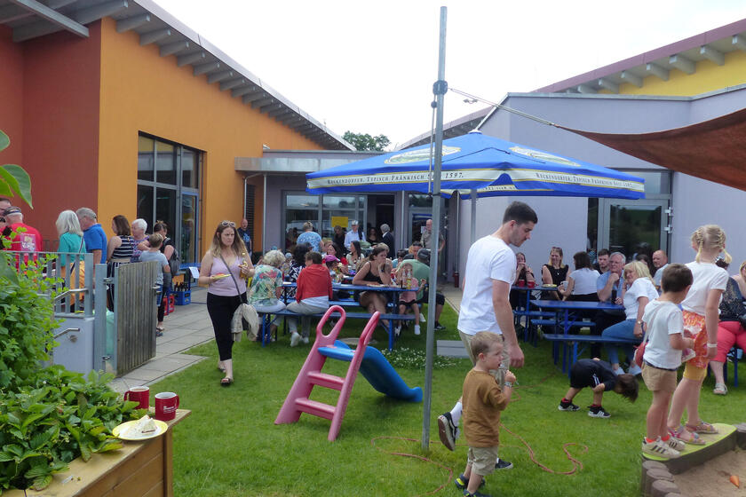 Was gibt es Schöneres als bei tollem Wetter zusammen zu feiern? Das gilt natürlich auch für die Johanniter-Kindertagesstätten in Oberfranken. Den Auftakt machte Ende Juni die Kinderinsel in Reckendorf. Rund 300 Gäste genossen im Garten der Kita bei schönem Wetter Kaffee und Kuchen, Pizza und kühle Getränke und natürlich vor allem die Aufführungen der kleinen Kinderinsel-Künstler.
