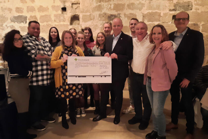 Den Spendenscheck überreichten die Mitarbeitenden der Biberbande im Rahmen der Weihnachtsfeier des RV Oberfranken an das PSNV-Team. Klar, dass es da strahlende Gesichter zu sehen gab!
