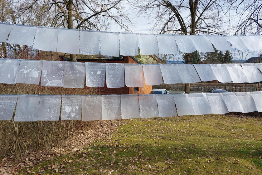 Das Projekt L(i)ebensbriefe ist eine Idee der Münchner Kunstpädagogin Marielle Seitz und wurde bereits an zahlreichen Orten in Deutschland umgesetzt. Jetzt wandert die Ausstellung auf Initiative von Lacrima, dem Trauerzentrum der Johanniter für Kinder und Jugendliche, auch durch Oberfranken. In den kommenden Wochen werden die auf durchsichtiger Folie geschriebenen Briefe, aufgehängt an Paketband und unter freiem Himmel hell und leicht wirkend noch in Bamberg und Kasendorf zu sehen sein, erste Station war Kulmbach. Den Auftakt macht an jedem Ort ein Familiengottesdienst, in dem es auch um das Thema Trauer geht.