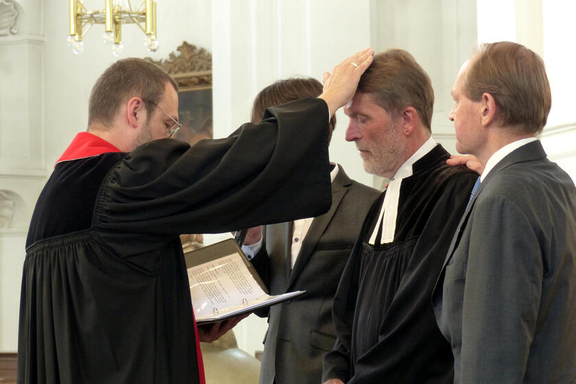 Der 66-jährige Johannes Wagner-Friedrich begleitet künftig rund 400 haupt- und ehrenamtliche Johanniter seelsorgerisch – und er freut sich auf seine neue Aufgabe. Das war während des Gottesdienstes und der anschließenden Feierstunde deutlich zu spüren: „Rufen Sie mich an, schreiben Sie mir, laden Sie mich ein, wenn Sie jemanden zum Reden, zum Beraten, zum Wege suchen und finden brauchen“, betonte er in seiner Predigt: „Ich freue mich auf all die neuen Entdeckungen, die ich dank Ihrer Hilfe machen kann.“