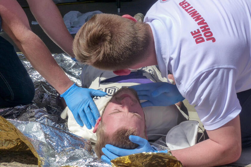 Unter anderem mussten die Prüflinge ihr neu erworbenes Wissen und Können bei einem fiktiven Leitersturz, bei einem gestellten Verkehrsunfall auf einem Parkplatz und sowie bei einem verunglückten Motorradfahrer mit Sprunggelenksverletzung beweisen. Damit sind die neuen Sanitätshelfer gut gerüstet für den Ernstfall. Die Ausbildung zum Sanitätshelfer bei den oberfränkischen Johannitern richtet sich auch an externe Teilnehmer, die sich bereits bei anderen Hilfsorganisationen engagieren oder sich für ein ehrenamtliches Engagement qualifizieren wollen. Weitere Informationen gibt es unter: www.johanniter.de/oberfranken