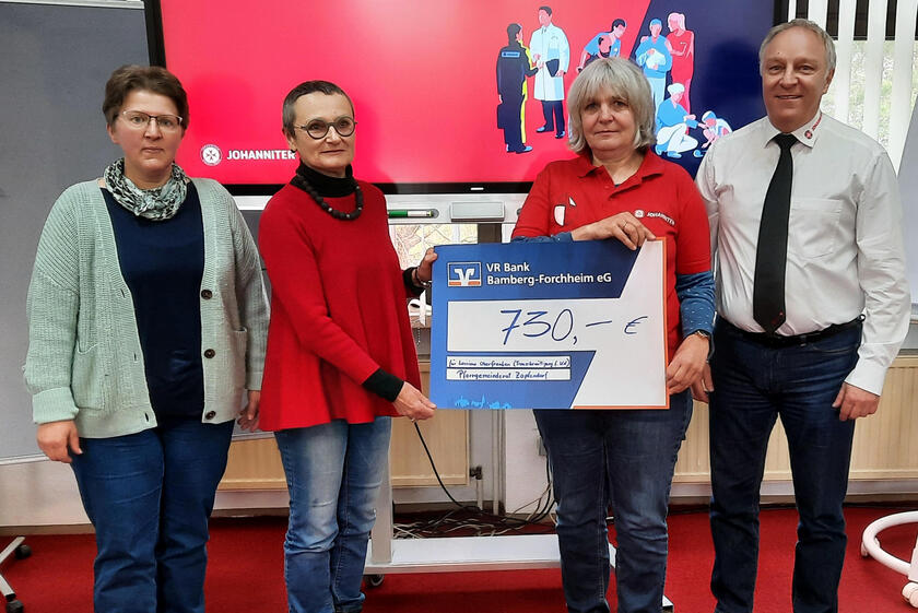 730 Euro wurden durch den Verkauf von Kaffee und Kuchen beim Tag der offenen Tür der Pfarrgemeinde Zapfendorf erlöst. Diese Summe wird traditionell gespendet und geht in diesem Jahr an Lacrima, das Trauerzentrum der oberfränkischen Johanniter. Bei Lacrima betreuen ehrenamtliche Trauerbegleiter und Trauerbegleiterinnen Kinder und Jugendliche, die einen nahen Angehörigen verloren haben bei ihrem Weg durch die Trauer. Das Angebot der Johanniter ist für die betroffenen Familien kostenfrei und wird durch Spenden finanziert. „Damit wir Lacrima anbieten und möglichst viele Familien betreuen können, sind wir auf Unterstützer angewiesen“, erklärt Lacrima-Leiterin Bernadette Sauerschell. „Deshalb können wir Spendern wie dem Pfarrgemeinderat Zapfendorf gar nicht genug danken! Sie machen es möglich, dass wir trauernden Kindern helfen können.“