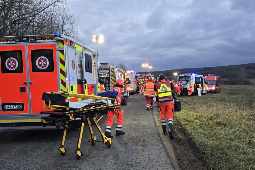 Wenn ein Notfall eintritt, dann zählt jede Sekunde. Damit Einsatzkräfte von Rettungsdienst, Bevölkerungsschutz und Feuerwehr gut vorbereitet sind, muss regelmäßig geübt werden – so wie am vergangenen Wochenende in Unterleiterbach bei Zapfendorf. Rund 100 Helferinnen und Helfer der oberfränkischen Johanniter, der Malteser Bamberg sowie der Feuerwehren Unterleiterbach, Zapfendorf, Ebensfeld und Rattelsdorf mussten einen schweren Verkehrsunfall mit mehreren Verletzten bewältigen. Gemeldet worden war ein sogenannter Massenanfall von Verletzten mit mindestens 16 Betroffenen (MANV 16-25). Die Einsatzkräfte wurden dabei mit folgendem Einsatzszenario konfrontiert: Drei verunfallte PKW mit schwer verletzten, teils eingeklemmten Personen, ein Kleinbus mit Kindern, der kurz nach dem Unfall an der Unglücksstelle vorbeikam, sowie eine vermisste Person. Der Bereich Realistische Unfalldarstellung der Johanniter und der Malteser hatte vorab rund ein Dutzend Mimen geschminkt, um möglichst wirklichkeitsnahe Verletzungen zu simulieren.