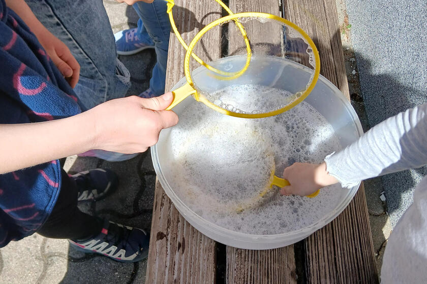Je wärmer es wird, desto mehr Zeit verbringen Team und Kinder nach Schulschluss auch wieder im Freien. Die Racer und Roller werden jeden Tag aus dem Keller geholt und auch die neuen Pferdeleinen sind fast durchgehend im Einsatz. Und das Riesenseifenblasen-Set ist auch in diesem Schuljahr ein Renner. Die Challenge dabei: Wer schafft die größte Seifenblase? Da sind nach Unterrichtsende auch Schulfreunde dabei, die nicht in die Mibet gehen.