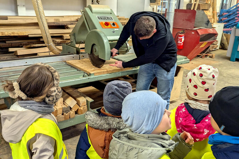 „Der Besuch in der Schreinerei war eine tolle Gelegenheit, den Kindern Technik und Handwerk begreifbar zu machen. Neugier und Praxis stehen bei uns im Vordergrund — und bei diesem Ausflug konnten wir beide Dinge wunderbar miteinander verbinden“, freut sich Kinderinsel-Leiterin Angela Eckschmidt. Das Thema wird dann auch in der Kita direkt aufgenommen: Das Team wird mit den Kindern besprechen, wie man sich an einer Werkbank und beim Umgang mit Werkzeug richtig verhält. Denn dann können die „Nachwuchsschreiner“ sich auch in der Kinderinsel mit Hammer, Säge und Schraubenzieher handwerklich betätigen.