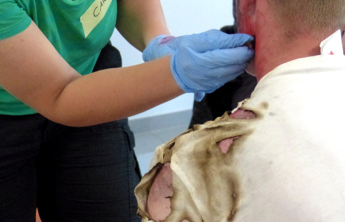 Du hast Lust, Mimen zu Schminken oder bringst schauspielerisches Talent mit? Dann werde ehrenamtliches Mitglied im Team der Realistischen Unfalldarstellung. Die Bandbreite der Szenarien ist groß: Von der einfachen Schnittwunde über einen Knochenbruch oder eine Verbrennung bis hin zu lebensgefährlichen Polytrauma mit stark blutenden Wunden können wir fast alles nachstellen. Dabei kommt unter anderem Schminkmaterial aus dem Film- und Theaterbereich zum Einsatz.
