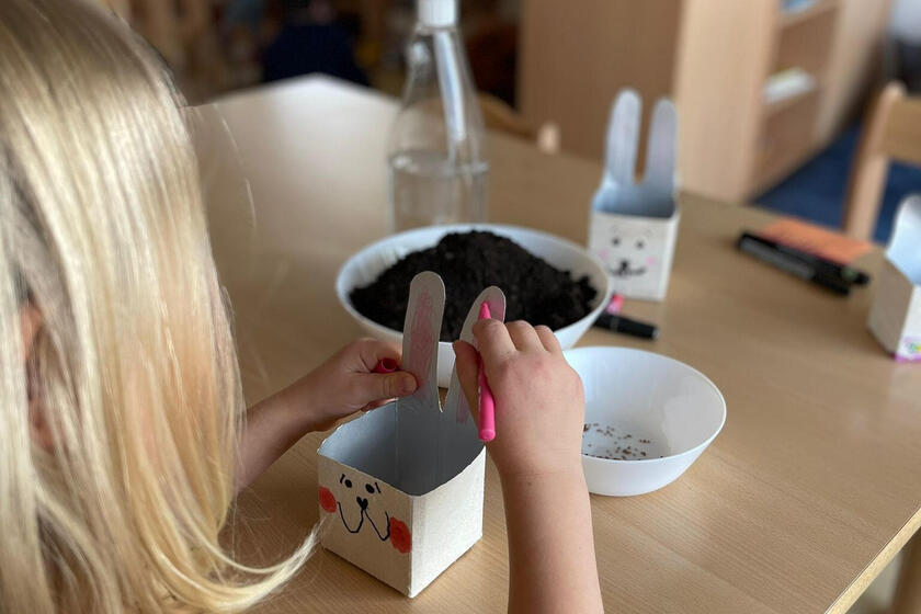 Ein bisschen Gärtnern plus Upcycling und schon hat man eine tolle Osterüberraschung! In der Bieberbande sind so hübsche Osterhasen ??aus Milchkartons entstanden, die dann auch bald ein Fell aus Kresse haben werden - die wurde nämlich in den süßen Hasen angesät. Das Basteln hat der Eichhörnchen-Gruppe viel Spaß gemacht, jetzt aber warten alle gespannt auf die ersten grünen Pflänzchen. Die dann bestimmt ganz schnell aus einem Butterbrot ein besonder leckeres Kresse-Butterbrot machen, Allzu lange dürften die Hasen ?? ihr grünes Fell also nicht tragen ?