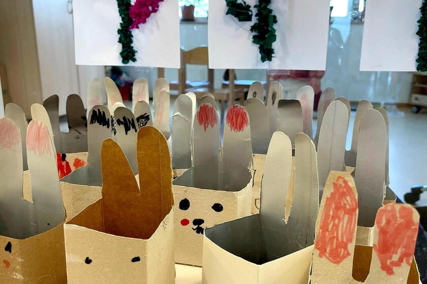 Aus Milchkartons werden Hasen mit grünem Fell