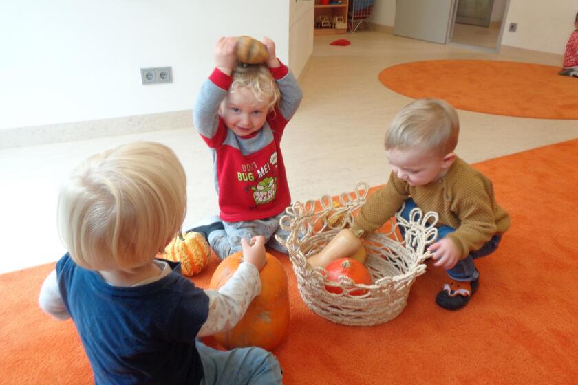 Regensburg ■ Bunte Blätter fallen von den Bäumen, die Temperaturen sinken und auf den Feldern liegen unzählige Kürbisse: der Herbst ist gekommen. Eine Woche lang waren die Kinder der Johanniter-Krabbelstube „Blumenstraße“ im Oktober mit dem Thema Kürbis beschäftigt.
