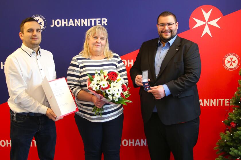 Doris Straubinger erhält das „Ehrenzeichen am Bande“ der Johanniter-Unfall-Hilfe