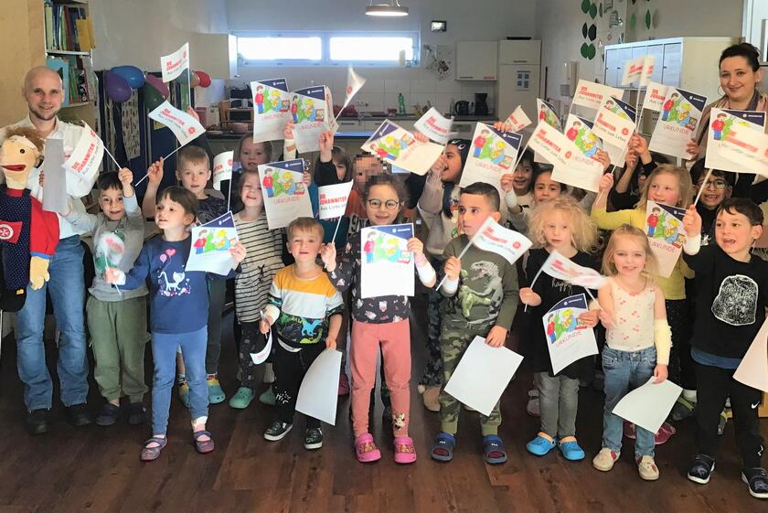 Die Kinder im Johanniter-Kindergarten „Wichtelvilla“ erhalten Erste-Hilfe-Kurs