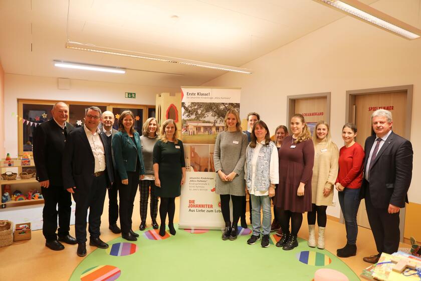 Mit dieser sehr positiven Aussicht auf weiteren Zuwachs der Krippe übernahm Martin Steinkirchner, Regionalvorstand der Johanniter in Ostbayern das Wort: „Aller guten Dinge sind drei. Die Einweihung der dritten Krippengruppe ist etwas ganz besonderes. Wir sind sehr dankbar und stolz darauf, was bereits geleistet wurde und freuen uns über die langjährige und unkomplizierte Partnerschaft mit dem Markt Kallmünz und dem Team der Einrichtung.“