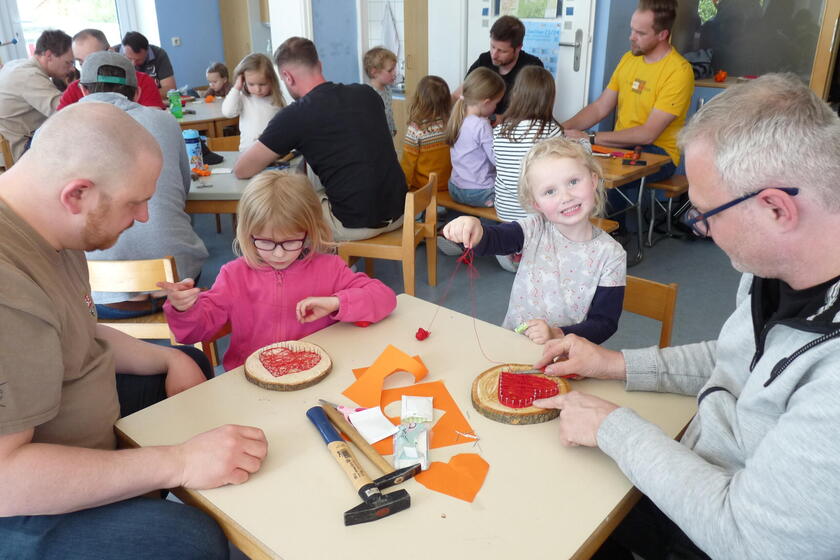 Waldershof Das Johanniter-Kinderhaus „St. Sebastian“ in Waldershof öffnete seine Türen für einen besonderen Bastelnachmittag: In einer herzlichen Atmosphäre sollten Väter und ihre Kinder ein Geschenk für den anstehenden Muttertag kreieren. Insgesamt arbeiteten 46 Kinder und ihre Väter in zwei Gruppenräumen des Johanniter-Kinderhauses „St. Sebastian“ zusammen.