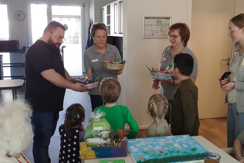 Schwabelweis ■ Die Kinder des Johanniter-Kinderhauses „Wiesenhüpfer“ verbreiteten fröhliche Stimmung in der Johanniter-Tagespflege Schwabelweis. Gemeinsam mit dem Einrichtungsteam besuchten die Kleinen die Tagespflege das erste Mal, die sich im gleichen Gebäude befindet, und überreichten stolz ihre selbst gebastelten Geschenke. Bevor die Übergabe stattfand, sangen die Kinder noch ein Lied: „Stups der kleine Osterhase“.