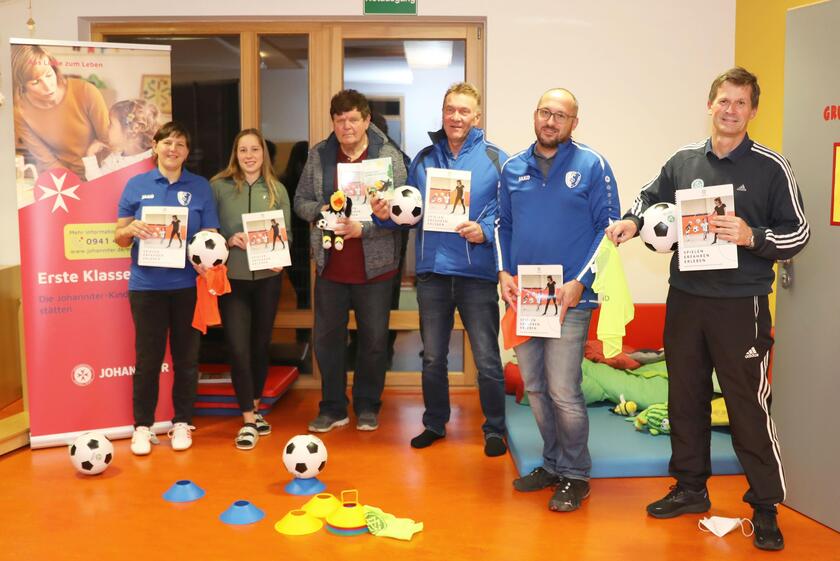 Pettendorf ■ Die Johanniter-Kinderkrippe „Nesthäkchen“ in Pettendorf darf sich über eine Fußballgrundausstattung vom Deutschen Fußball-Bund freuen. Mitinitiator war Heinz Zach, Bezirks-Jugendleiter beim Bayerischen Fußball-Verband.