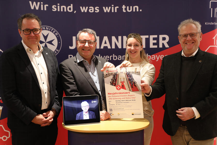 In Anwesenheit von Oberbürgermeister Andreas Feller, Martin Steinkirchner, Regionalvorstandsmitglied der Johanniter in Ostbayern, sowie der Hospizleitung Katharina Salbeck fand am Dienstag, den 7. Januar, eine Pressekonferenz im Hospiz statt. Matthias Walk, Leiter des Fundraisings bei den Johannitern, präsentierte den Pressevertretenden dabei das Programm des Konzerts.