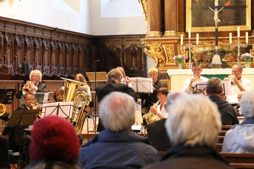 Großer Applaus für die Posaunenmusik unter Leitung von Prof. Wilfried Scharf und Katherina Garcia, die selbst im Chor der Blasmusiker mitwirkte, bestätigte eine ansprechende Darbietung der Künstlerinnen und Künstler.