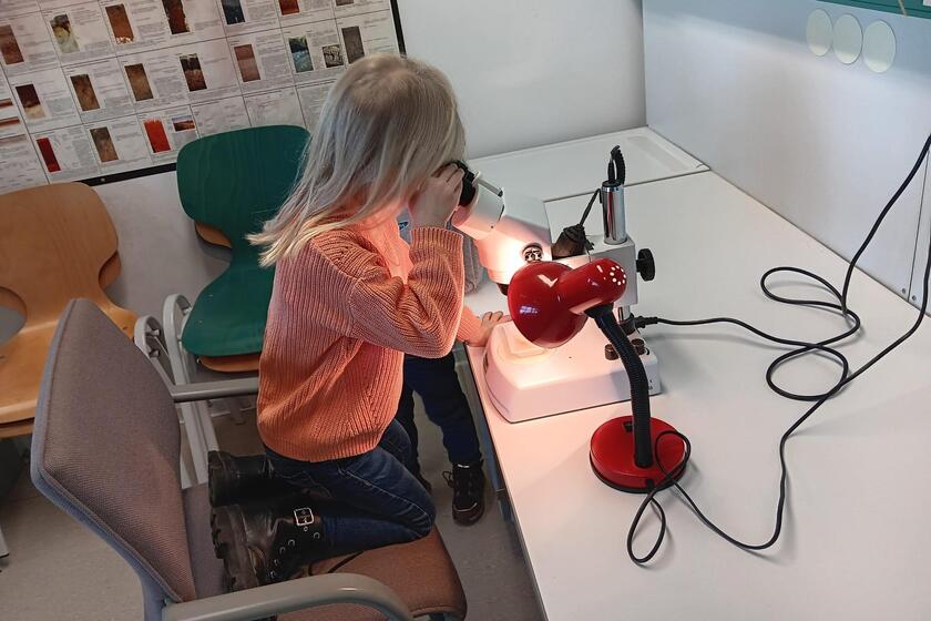 Die Kinder widmeten sich der Geschichte einzelner Steine und benutzten vor allem ihre Sinne, um die Herkunft und Entstehung dieser herauszufinden. Auch am Mikroskop probierten sich die kleinen Forscher. Als Andenken stellte jedes Kind selbst einen Stein her.