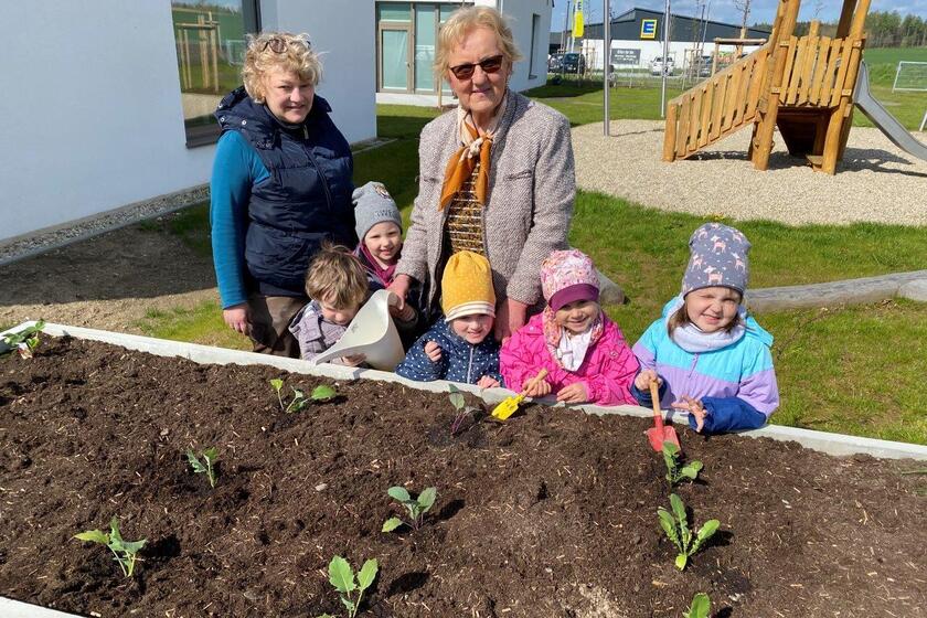 Sie zeigenten den Kleinen, wie beispielsweise eine Ringelblume oder ein Kohlrabi aussehen, bevor man diese pflanzt. Dies wurde durch die Geschichte des kleinen Samens veranschaulicht, bei der die Kinder gespannt lauschten.