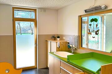 Ebenso versuchen wir, die Kinder auch beim Übertritt von der Kinderkrippe in den Kindergarten zu unterstützen. Durch den geregelten Tagesablauf in der Einrichtung kennen die Kinder die Abläufe sowohl in der Krippe, als auch im Kindergarten, sodass sie der neue Alltag nicht zu sehr verunsichert. Sie profitieren bei diesem Wechsel von den bekannten Strukturen, die sie die letzten Jahre in der Kinderkrippe kennen gelernt haben.