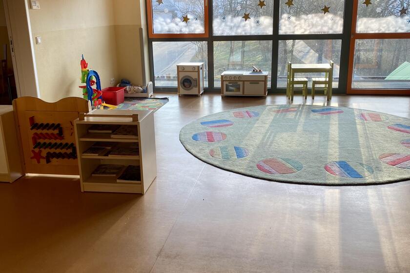 Im Obergeschoss komplettieren ein Musik- und Intensivraum, ein Lagerraum, das Personal-WC und ein Putzraum unsere Einrichtung.