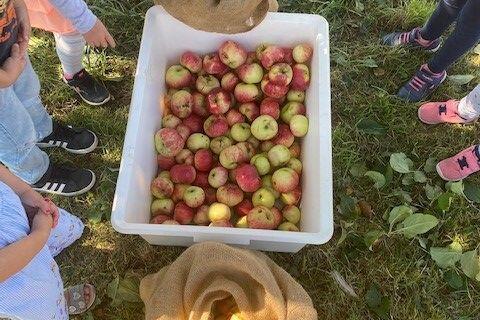 Kinder und Eltern der Johanniter-Kita Erdenstern machten sich auf den Weg zur Apfelernte