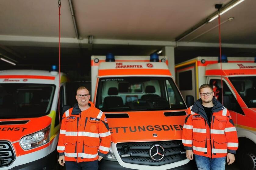 Mitarbeiter der Johanniter unterbrechen Prüfung für ehrenamtlichen Notfalleinsatz