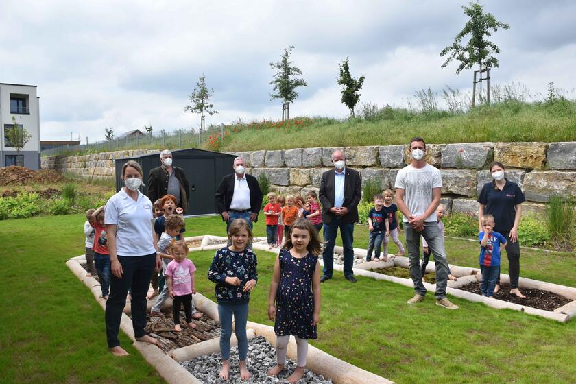 Bürgermeister Schlier und Regionalvorstandmitglied Kinstle bedankten sich bei allen Beteiligten für ihr Engagement und ihren Einsatz. Gemeinsam mit der Station zum Wassertreten, dem Kräutergarten und dem Gemüseacker bilde der neue Barfußpfad ein stimmiges Bild in der Johanniter-Kindertagesstätte, die sich dem Kneipp-Konzept verschrieben hat.