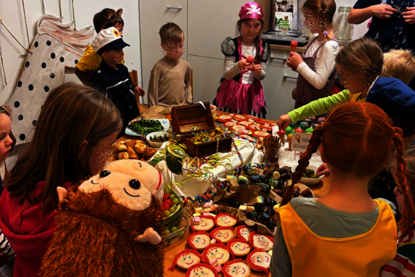 In der Woche vor dem großen Faschingsfest startete schließlich die närrische Themenwoche im Kindergarten. Am Montag bastelten die Kinder fröhliche Affenmasken und sangen im Morgenkreis das Lied von der Affenbande. Am Dienstag verwandelten sie Schwimmnudeln und Krepppapier in fantasievolle Steckenpferde. Stolz ritten sie anschließend in einer fröhlichen Polonäse durch die Räume der Einrichtung. Der Höhepunkt folgte am Mittwoch bei der großen Faschingsparty. Ein kunterbuntes Buffet mit liebevoll gestalteten Leckereien passend zum Thema erwartete die Kinder. Für besondere Begeisterung sorgte das Fegen mit den berühmten „Bürstenschuhen“. Lustige Spiele sowie bekannte Faschingslieder wie die „Karnevalsmaus“ und das „Gute-Laune-Lied“ rundeten das Fest ab. Ein ganz besonderes Highlight bildete eine Überraschung für die Kinder: Pippi Langstrumpf höchstpersönlich stattete der Gruppe einen Besuch ab – stilecht auf ihrem Pferd „Kleiner Onkel“. Die Freude war riesig. Ein herzliches Dankeschön gilt Klara K. und ihrem Pferd Lennox, die diesen besonderen Moment möglich gemacht haben.
