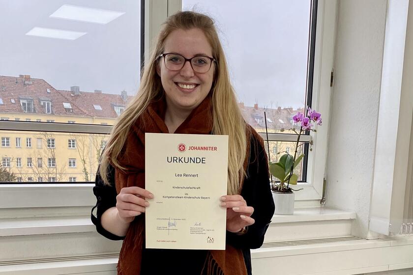 Lea Rennert, Teamleitung der Schulbegleitung bei den Johannitern in Würzburg und Tanja Strauß, Einrichtungsleitung des Johanniter-Kindergartens „Villa Kunterbunt" in Güntersleben, sind ab sofort anerkannte Kinderschutzfachkräfte. Sie haben den elftägigen Zertifikatskurs zur Kinderschutzfachkraft erfolgreich abgeschlossen. „Für Frau Strauß und mich war der Kurs inhaltlich eine große Bereicherung. Wir haben sehr viel fundiertes Fachwissen mit auf den Weg bekommen, welches uns in unserer täglichen Arbeit mehr Handlungssicherheit aber auch viel mehr Handlungsmöglichkeiten zum Thema Kinderschutz gibt", freut sich Rennert. Der Kurs orientierte sich inhaltlich an den aktuellen theoretischen und praktischen Anforderungen einer professionellen Wahrnehmung des Schutzauftrags der öffentlichen und freien Träger der Kinder-und Jugendhilfe.