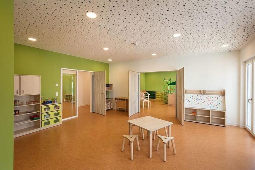 In unserer Kindertageseinrichtung betreuen wir insgesamt bis zu 129 Kinder ab dem vollendeten ersten Lebensjahr bis zum Schuleintritt. Das Besondere: Im Elementarbereich arbeiten wir nach einem offenen Konzept mit verschiedenen Funktionsräumen anstelle von Gruppenräumen – die Kinder wählen zwischen unterschiedlichen Spiel- und Lernbereichen und gestalten selbstbestimmt ihren Tag. Natürlich gibt es in den Räumen täglich verschiedene Spielangebote der Erzieherinnen und Erzieher, an denen die Kinder teilnehmen können. In der Krippe bieten wir zusätzlich 4 teiloffene Gruppen, die den jüngsten Kindern genügend Struktur und Bindung geben.