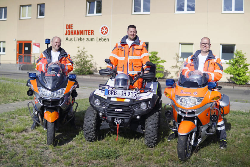 Die Mitglieder der rein ehrenamtlichen Motorradstaffel helfen überall auf den Autobahnen gern - unter anderem auf der A2, A9 und A10. Die Johanniter-Helfer sichern Einsatzstellen ab, leisten Erste Hilfe, unterstützen bei Verkehrskontrollen, leiten die Bildung einer Rettungsgasse ein und führen Rettungskräfte sicher an Unfallstellen heran. Jedes Jahr kommen so Tausende gefahrene Kilometer zusammen.