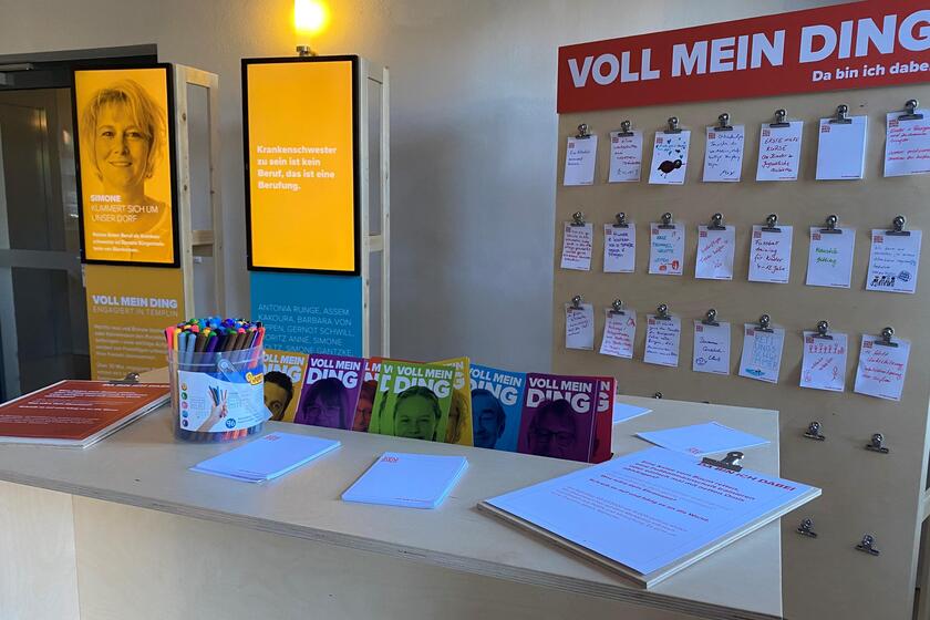 Zum Projekt-Abschluss wurden die Portraits der Freiwilligen für zwei Monate in einer Projekt-Schau im Foyer des Historischen Rathauses Templin gezeigt.