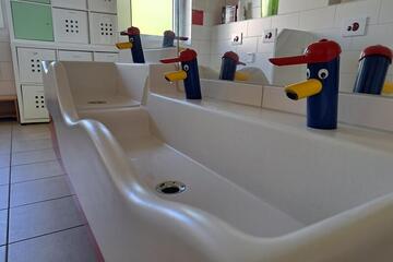 - In jeder Krippengruppe betreuen wir etwa sechs Kinder mit einem Betreuungsschlüssel von 1 zu 4,25