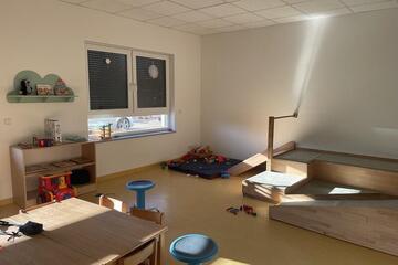 Der Neubau bietet Raum für 120 Kinder im Alter von 12 Monaten bis etwa 6 Jahren. Unser pädagogisches Team arbeitet montags bis freitags in vier altersgerechten Bereichen.