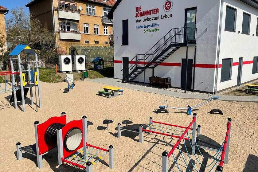 Die Kita Schildkröte bietet 88 Kitaplätze, von denen 18 Plätze Kindern von Beschäftigten der benachbarten Median Klinik zur Verfügung stehen.