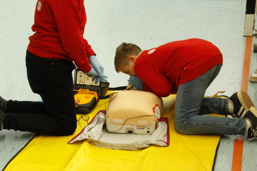 Dann wurde es ernst: 21 Teams aus 8 Schulen – unsere angehenden Schulsanitäter*innen standen bereit, um ihr Können unter Beweis zu stellen und ihre Grundausbildung erfolgreich abzuschließen. Um 10:00 Uhr fiel der Startschuss für die Stationen, und plötzlich war überall Bewegung: konzentrierte Blicke, schnelle Entscheidungen, flinke Hände.